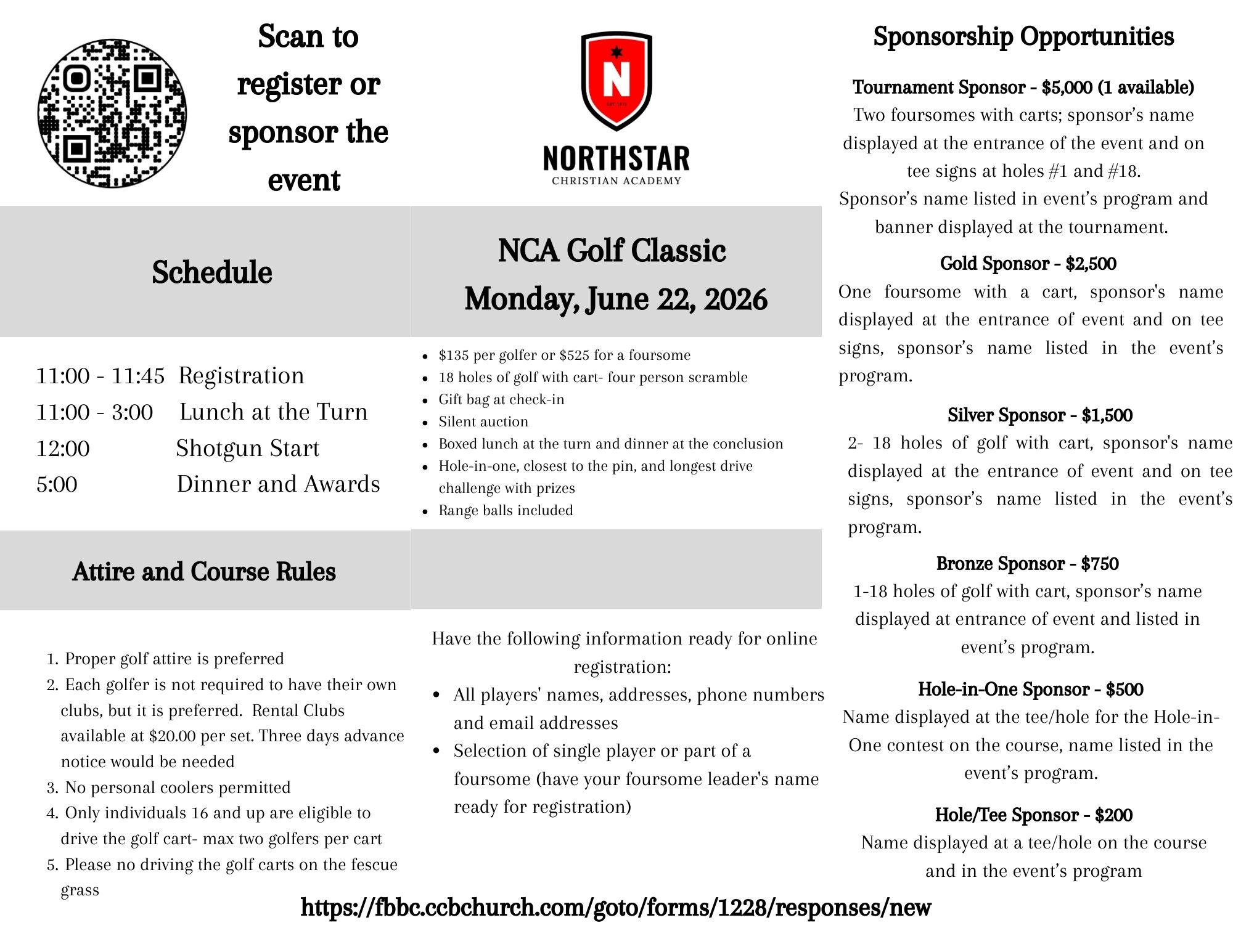 Click to view the brochure which includes sponsorship opportunities as well as course rules.